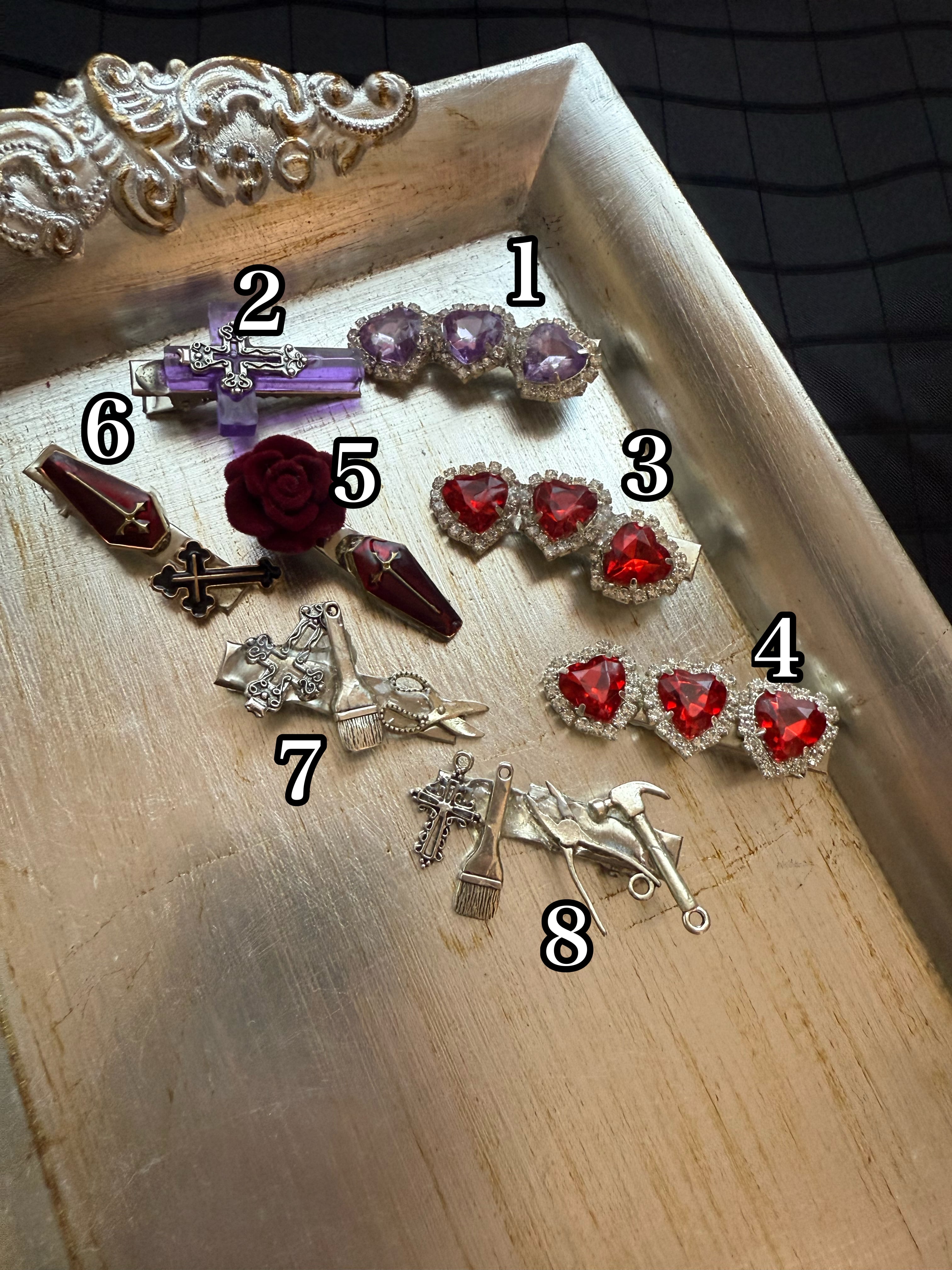デコラにも、ネクタイピンとしても、前髪や襟などに少し付けたりしてもアクセントになります。