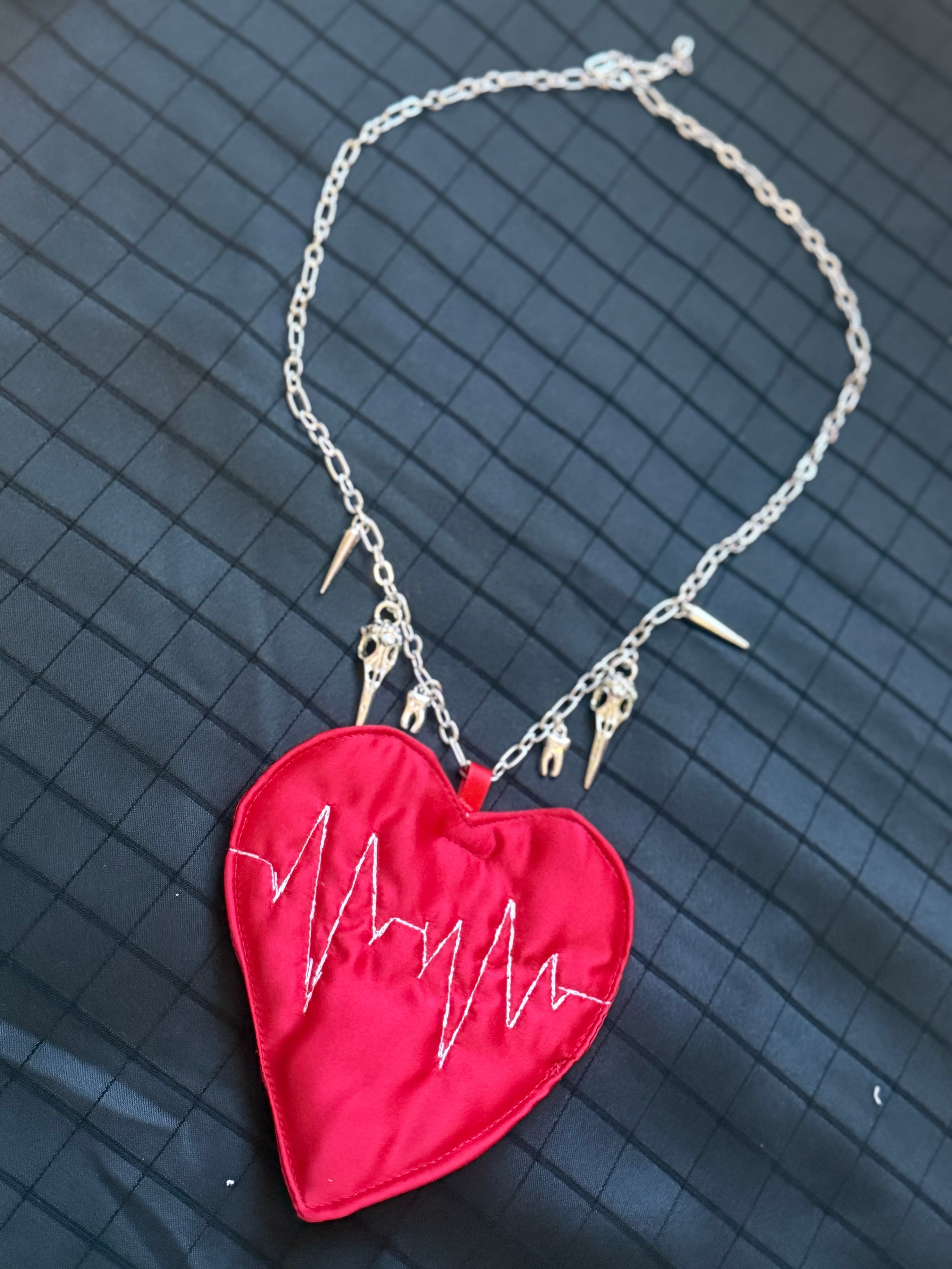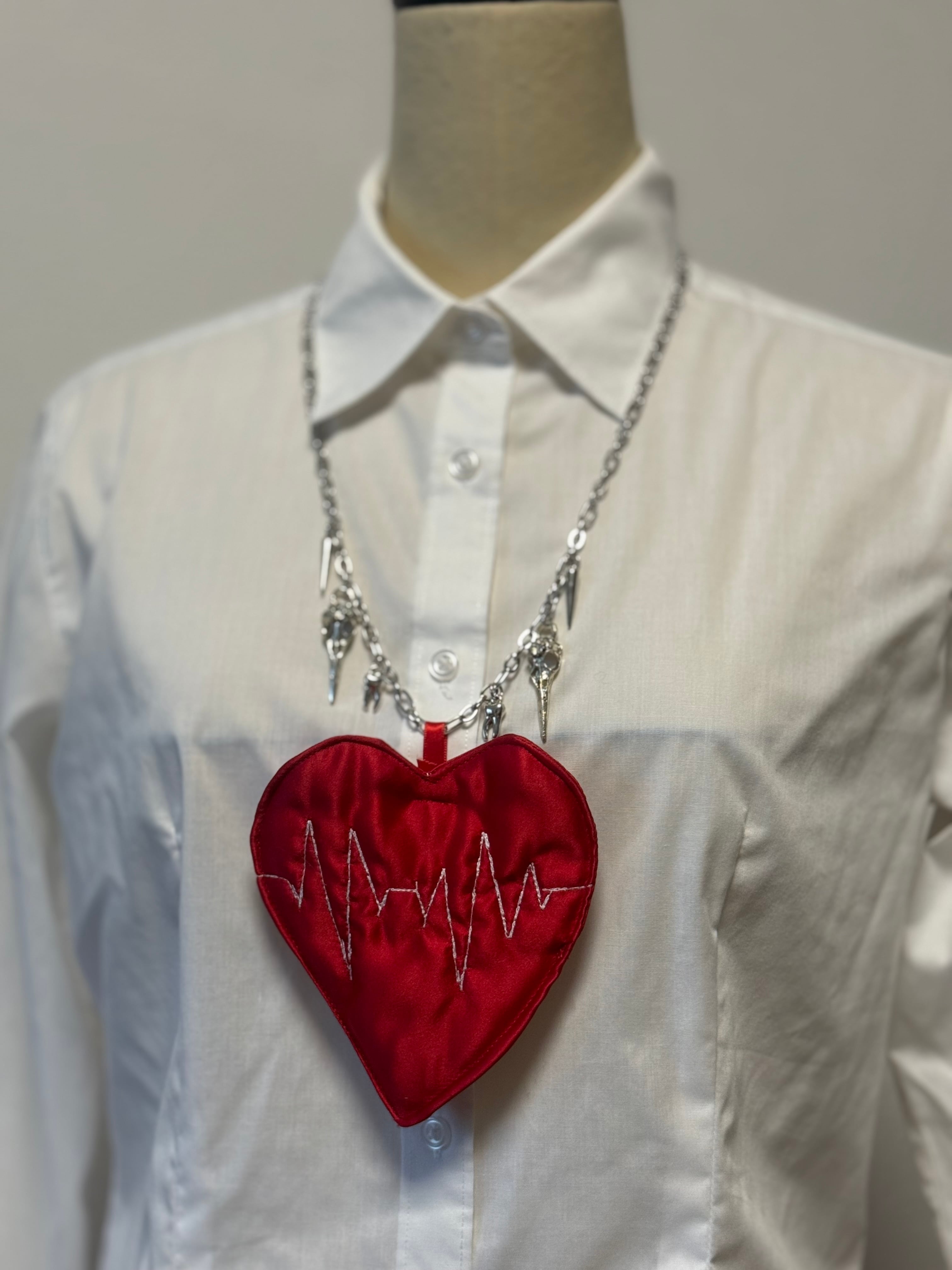 ハートの中に心電図の刺繍が入ったモチーフのネックレスです。