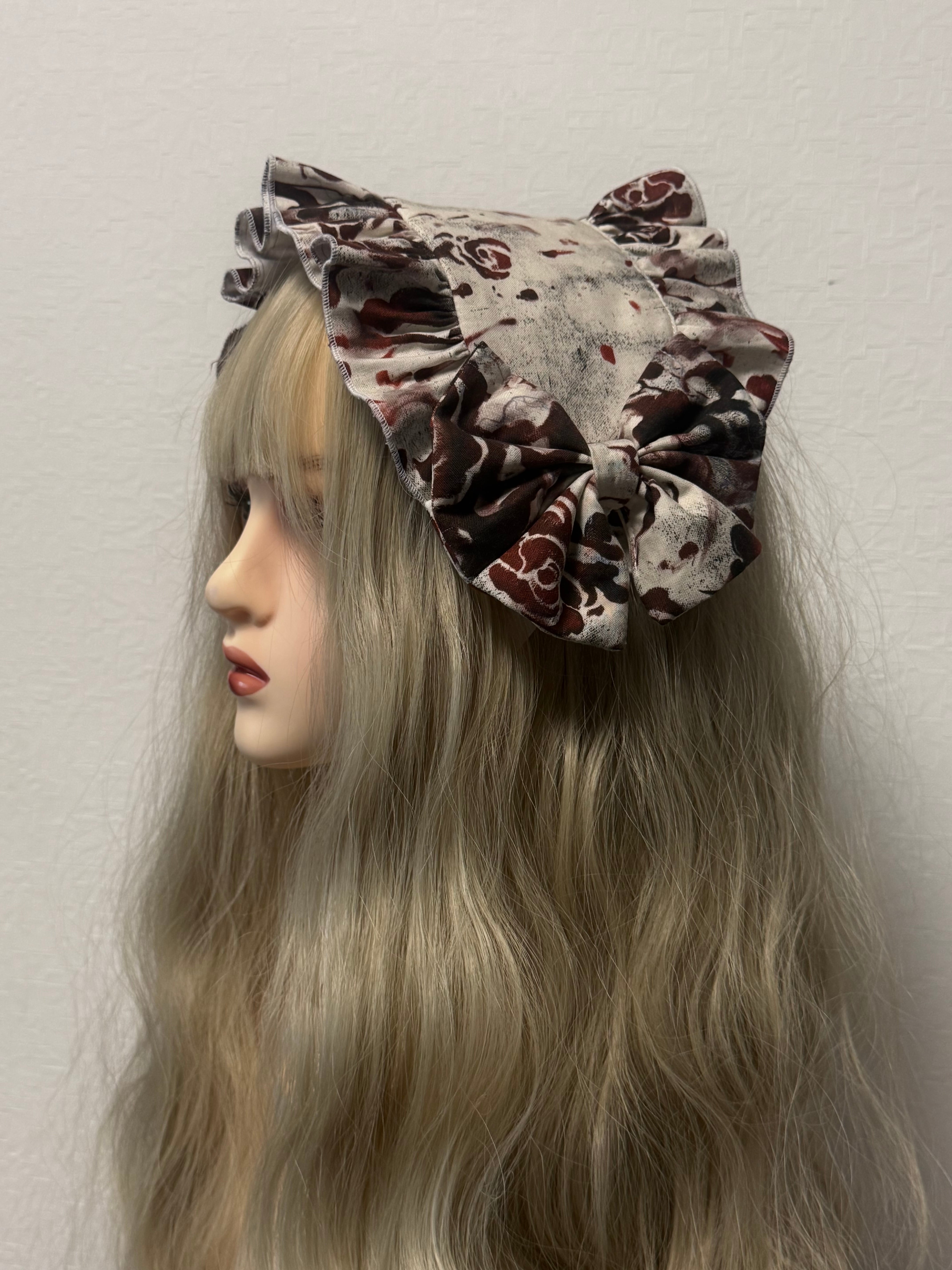 オリジナルプリントの血飛沫の柄のヘッドドレスです。