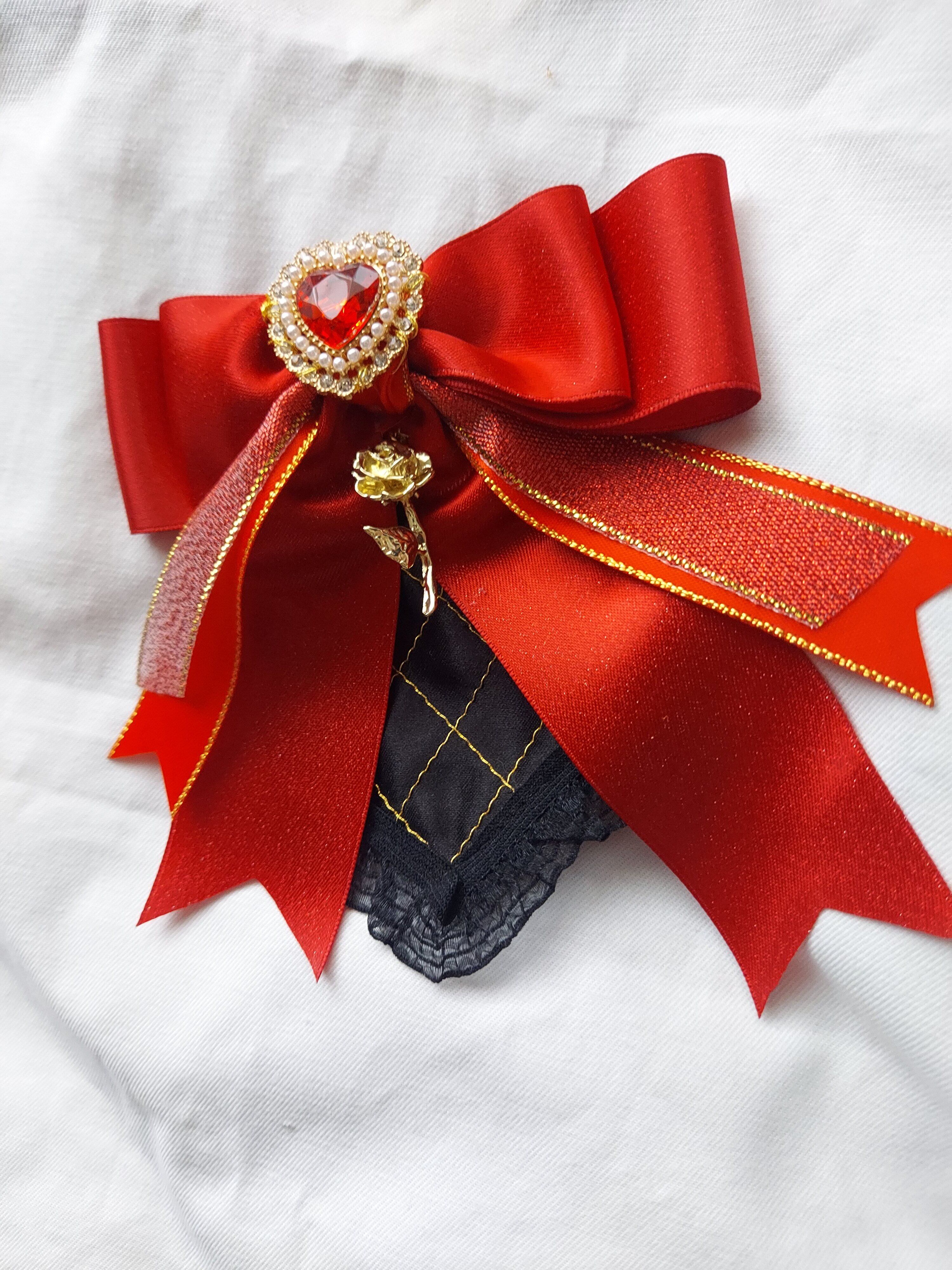 大粒の赤いハートが印象的なヘアクリップです。土台の部分は一点一点手作業で金ステッチを施しています。